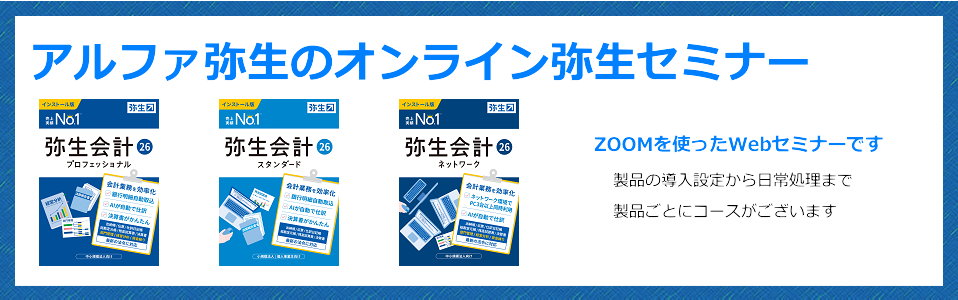 | アルファ弥生トップページ>弥生 オンラインセミナー(デスクトップアプリ) |